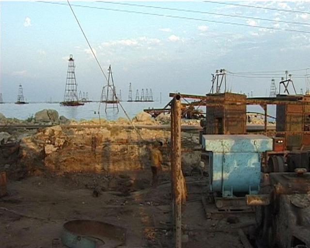 Black Sea Files is a territorial research on the Caspian oil geography: the world’s oldest oil extraction zone. A giant new subterranean pipeline traversing the Caucasus will soon pump Caspian Crude to the West. The line connecting the resource fringe with the terminal of the global high-tech oil circulation system, runs through the video like a central thread. However, the trajectory followed by the narrative is by no means a linear one. Circumventing the main players in the region, the video sheds light on a multitude of secondary sceneries. Oil workers, farmers, refugees and prostitutes who live along the pipeline come into profile and contribute to a wider human geography that displaces the singular and powerful signifying practices of oil corporations and oil politicians. Drawing on investigatory fieldwork as practiced by anthropologists, journalists and secret intelligence agents, the Black Sea Files comment on artistic methods in the field and the ways in which information and visual intelligence is detected, circulated or withheld.