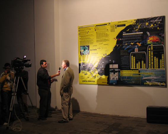 With art projects by DOA ALY (Cairo), YTO BARRADA (Tangier), RAPHAËL CUOMO/MARIA IORIO (Geneva), HALA ELKOUSSY (Cairo), CHARLES HELLER (Geneva), URSULA BIEMANN, (Zurich), HELENA MALENO (Tangier) in collaboration with media/design activists OBSERVATORIO TECNOLOGICO DEL ESTRECHO (Malaga), ARMIN LINKE (Milan) and CAMILLE PONCET/MOUHAMED COULIBALY-MASSASSI (esba Geneva).
